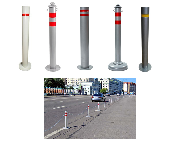 Парковочные столбики имеют разный вид крепления. Различают бетонируемый, анкерный, передвижной и съёмный металлический столбик.