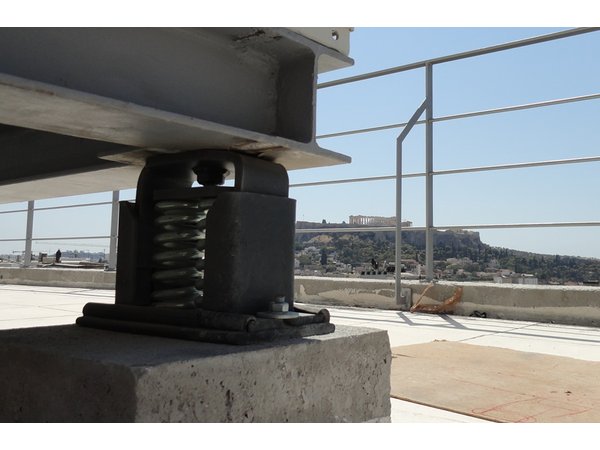 Антивибрационные опоры Vibro-SM были разработаны для работы с поперечными колебаниями (землетрясение и защита от ветровой нагрузки). Эластичная прокладка находящаяся между двумя вертикальными стабилизаторами, помогает избежать создания звукового моста. Также, за счет трения уменьшается резонанс в начале и в конце работы оборудования.