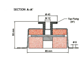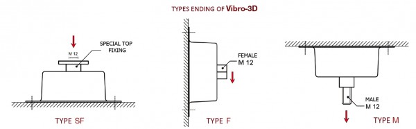 Vibro-3D Производится трех типов с внутренней резьбой (тип F), с наружной резьбой (тип Μ) и с особым верхним охватывающим креплением для монтажа (тип SF).