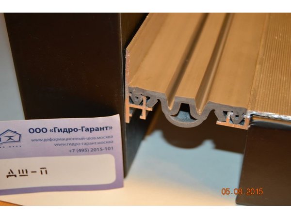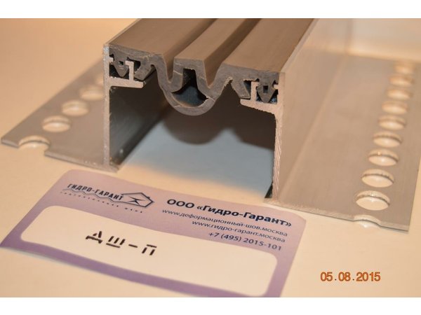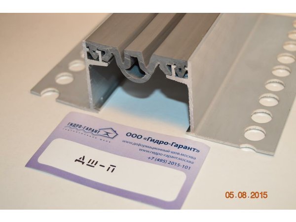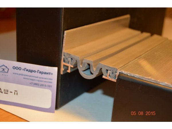 Деформационный шов ДШ-П состоит из алюминиевых направляющих и компенсатора из ПВХ или ТЭПа. Конструкция шва препятствует попаданию внутрь шва грязи, обеспечивает водонепроницаемость и устойчивость к износу. Швы не требуют проведения профилактических работ и устойчивы к старению. При выходе из строя компенсаторы могут быть легко заменены. Алюминиевый профиль накладной может быть окрашен в любой цвет по каталогу RAL. Компенсатор также может быть изготовлен в любом цвете по желанию заказчика.