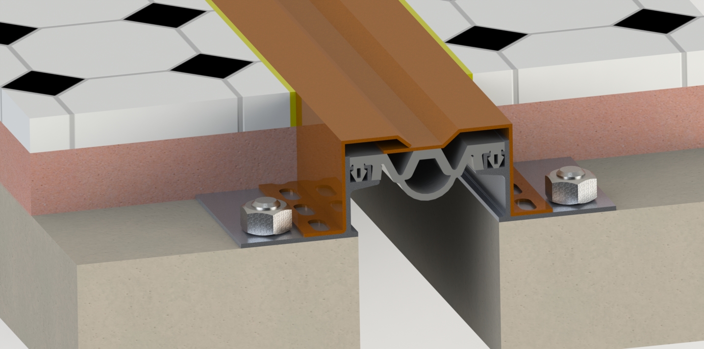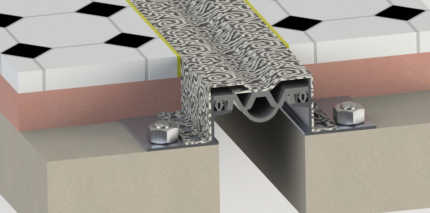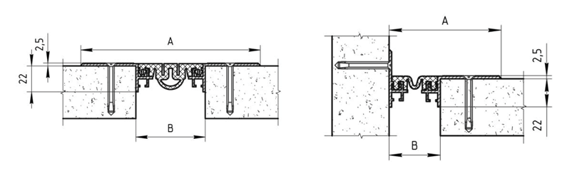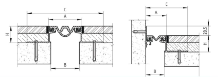 Устройство деформационных швов при строительстве административных, офисных и торговых центров, а также других зданий и сооружений с предполагаемой нагрузкой на шов до 20 кН. Эта модель компенсационного шва наиболее часто встречается в торговых центрах, офисных помещениях и т.д., т.к. по цене и качеству это наиболее выгодный вариант в помещениях, где не используют тяжелую технику и автомобили.