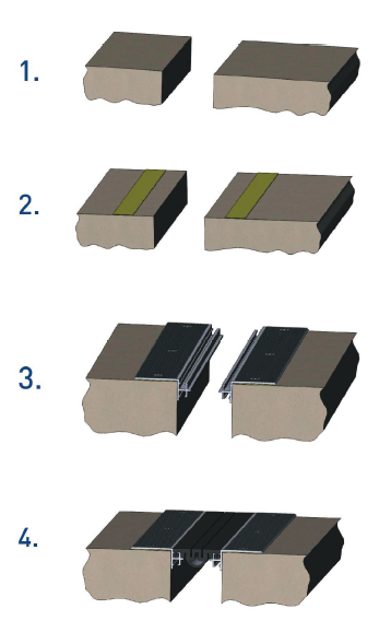 3) На герметик механически крепятся алюминиевые планки деформационного шва.